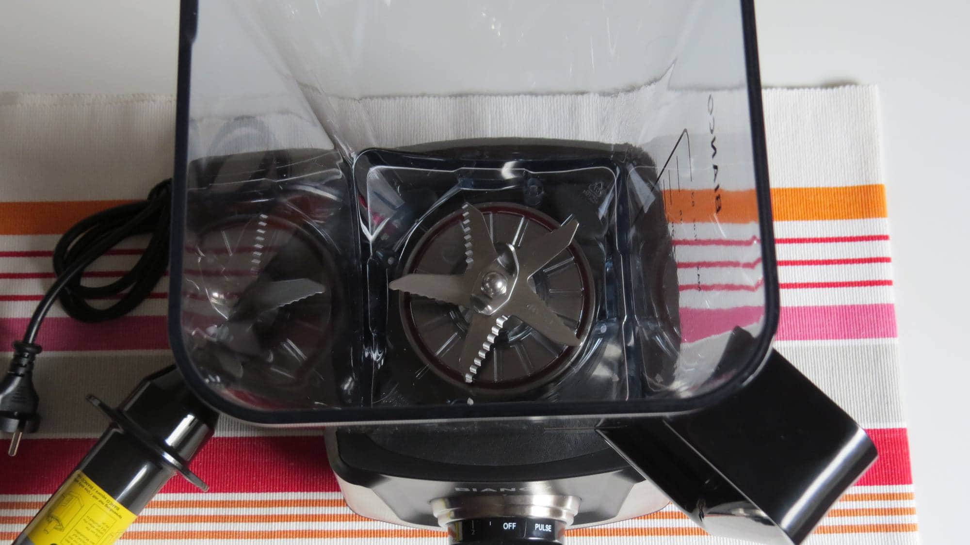 Hinsichtlich der Form des Mixbehälters hatte ich den Eindruck, dass ein nach unten schmaler werdender Behälter vor allem bei kleinen Mengen an Nüssen oder gefrorenem Obst, von Vorteil sein könnte. Während der Bianco größere Menge des gleichen Produkts innerhalb von Sekunden klein bekommen hat, hatte ich bei kleineren Mengen, wie zum Beispiel bei Nice Cream, Probleme, da die Messer nicht mehr richtig gegriffen haben und man hier auch nicht mit dem Stößel nachhelfen konnte.