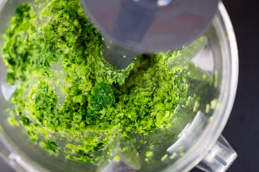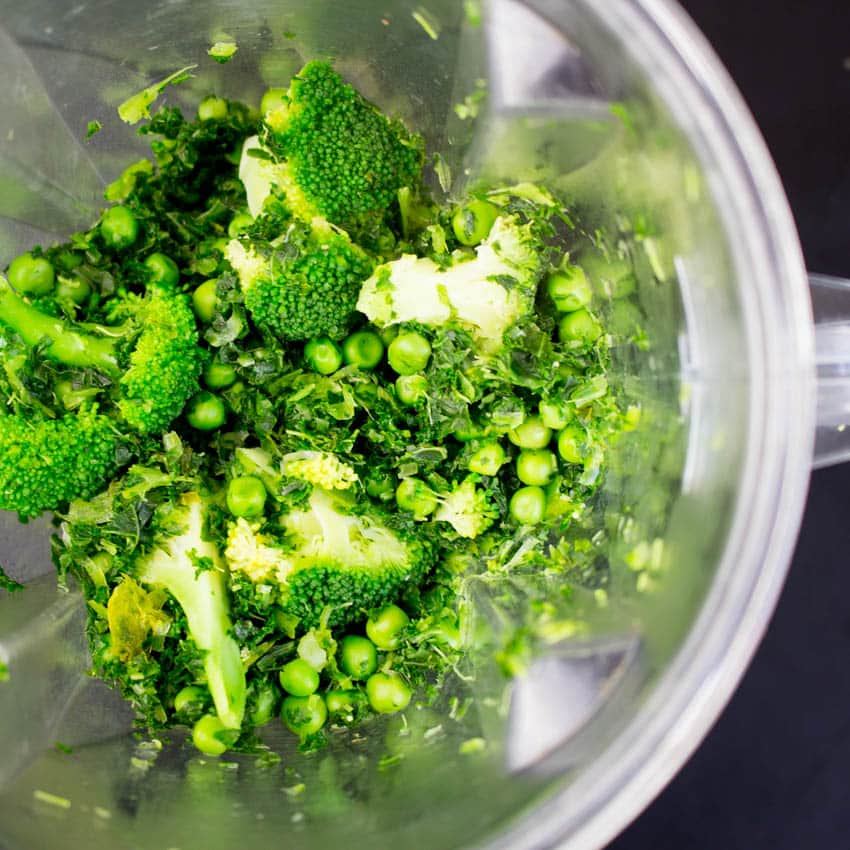 Aber zurück zum Green Monster Veggie Burger. Für die veganen Burger Patties habe ich Brokkoli, Erbsen, Grünkohl und Sellerie verwendet. Ich habe das Gemüse im selben Topf gekocht und danach im Mixer zerkleinert. Achtet dabei darauf, dass ihr die Masse nicht zu arg zerkleinert, sodass der Burger noch Biss hat. Ich habe dafür den Omniblend V benutzt und bei ihm dauert es nur etwa 30 Sekunden bis er alles zu Brei verarbeitet hat. Also passt auf wenn ihr einen Hochleistungsmixer benutzt, da geht das Zerkleinern manchmal schneller als man schauen kann.