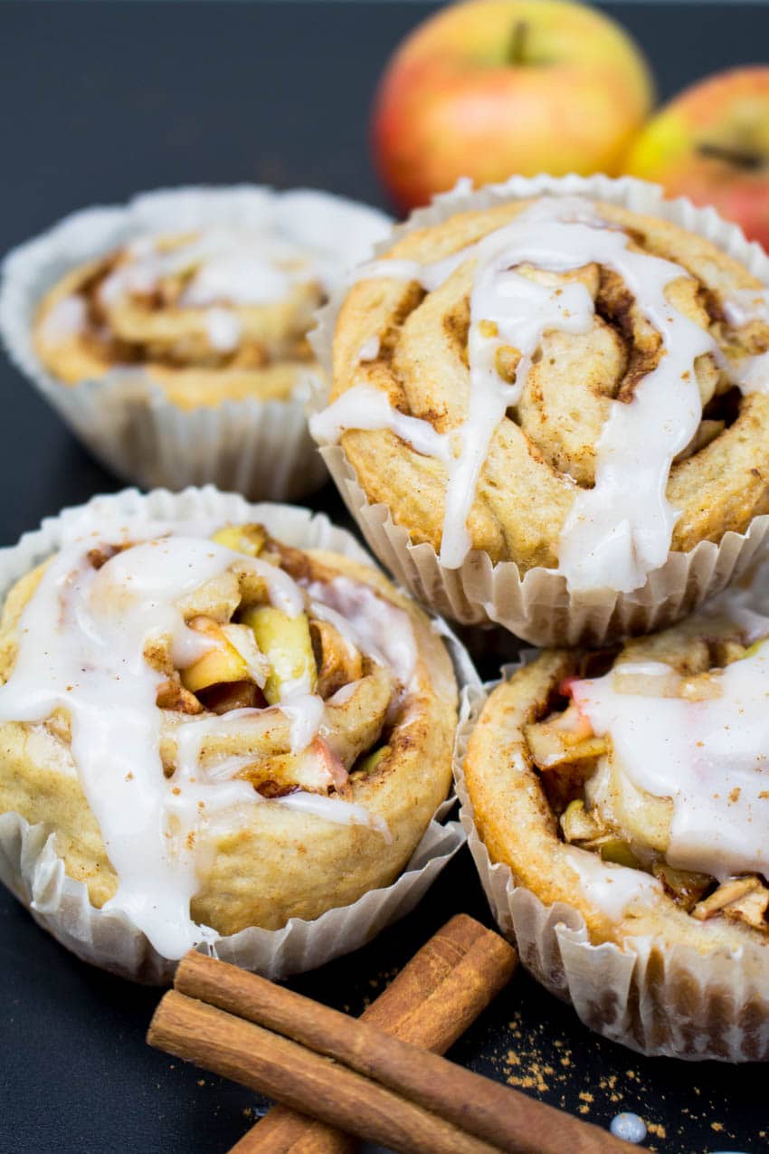 Insgesamt brauchen die veganen Apfel Zimtschnecken nicht länger als eine Stunde, was für Zimtschnecken wohl echt relativ schnell ist.